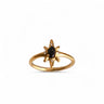 A dainty ring featuring a blue goldstone in the middle with four zirconia crystals around it on the front. Along with the words, ‘I want to believe’ in phoebe's handwriting on the back of the ring’s face.