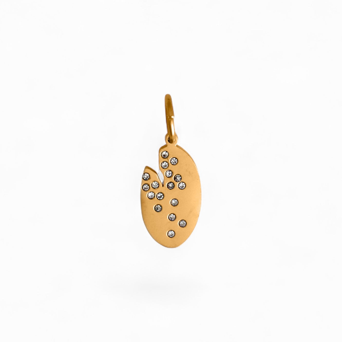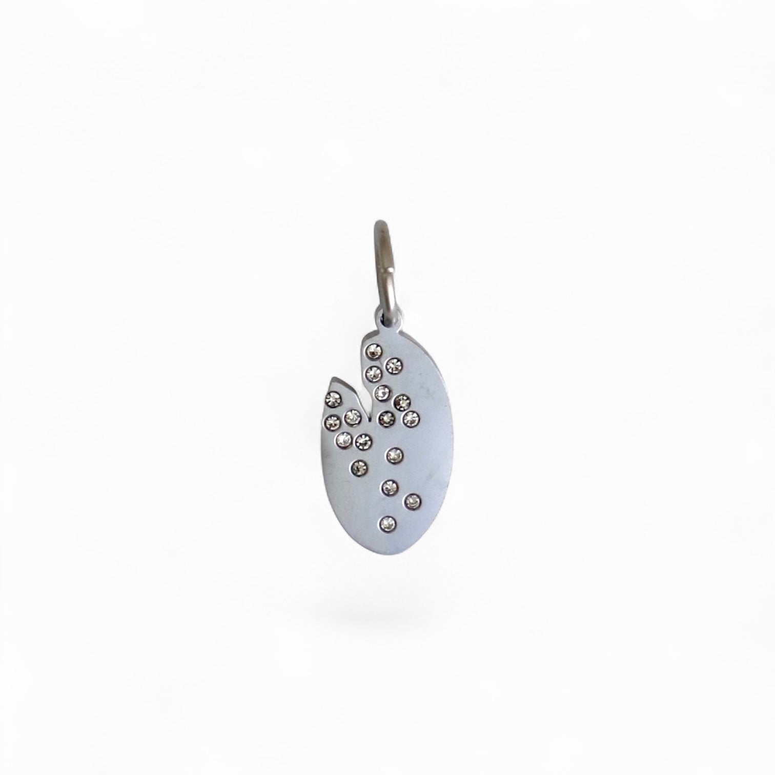 Charm features a crack and embedded crystals on the front.